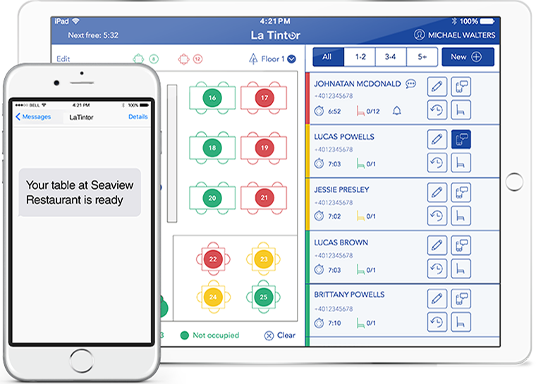 Forget about buzzers and communicate with your waiting customers by SMS delivered to their mobile phones. Send reminders, updates and notifications when their tables are ready and receive confirmations or cancelations.