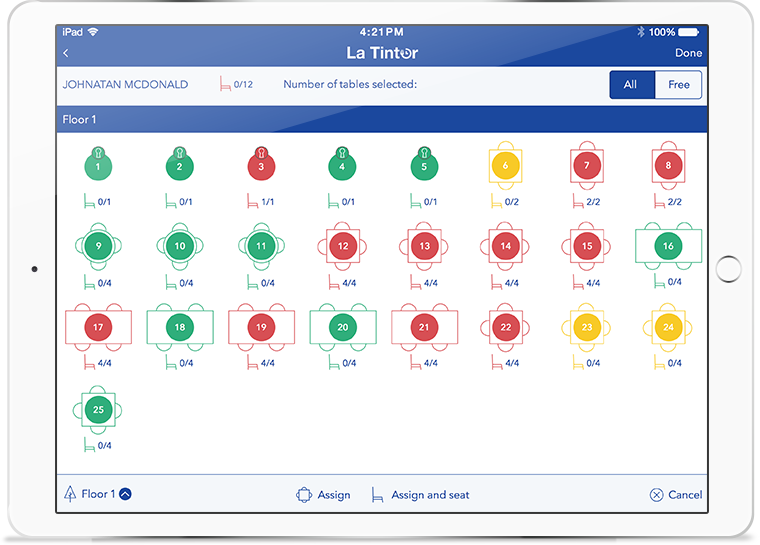 Empower your staff! Hosts can seat customers, free tables and change floorplans intuitively with a tap of a button.